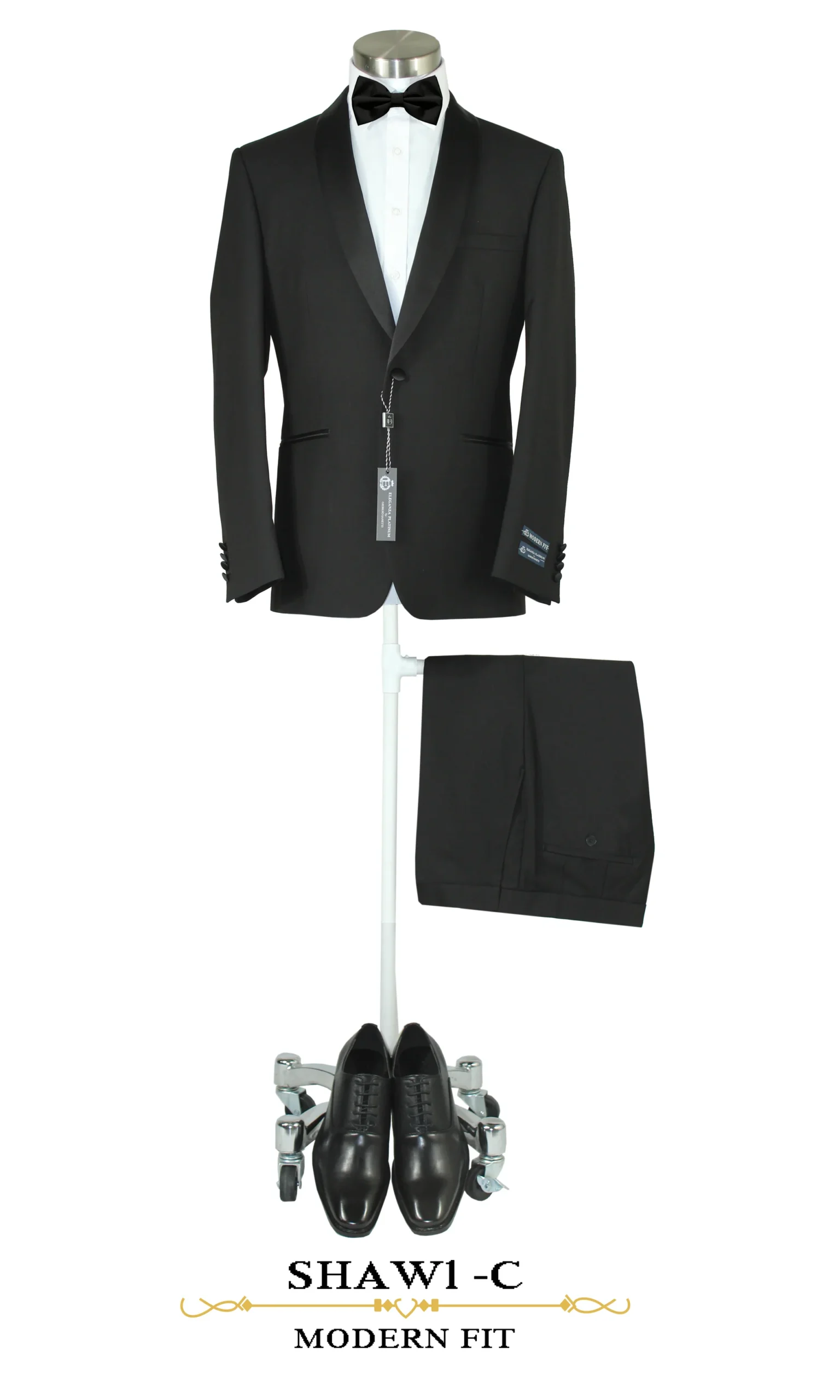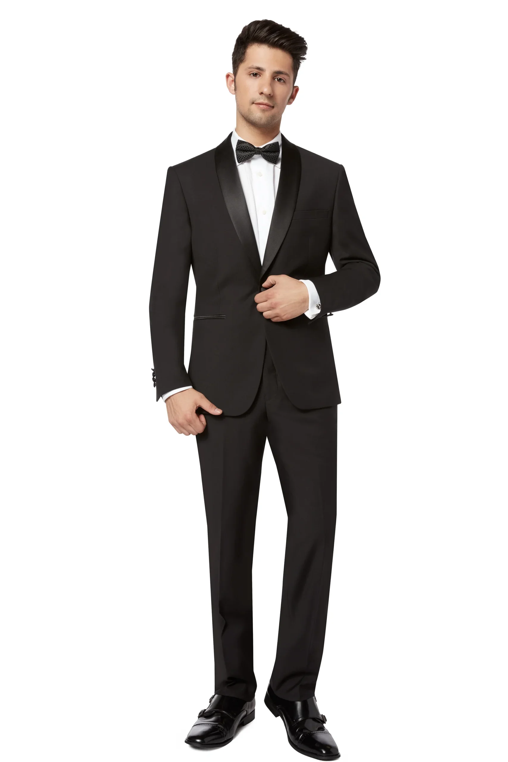 Platinum Tuxedo is a refined 2-piece tuxedo set (jacket + trouser) designed for formal occasions. Crafted in a smooth poly-rayon blend with satin Shawl lapel detailing, it delivers timeless black-tie sophistication. Available in Modern Fit and classic color options, perfect for weddings, proms, galas, and formal events.